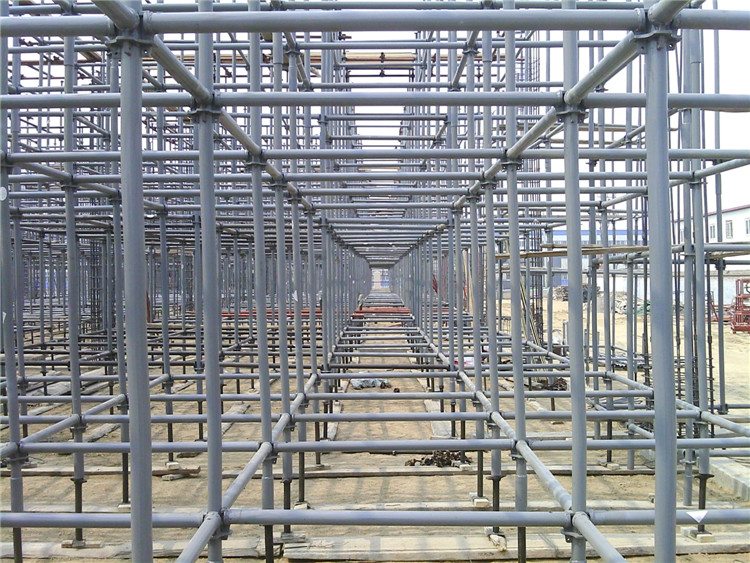 8.滿堂腳手架中間設置通道時,通道處底層門架可不設縱(橫)方向水平加固桿,但通道上部應每步設置水平加固桿。通道兩側門架應設置斜撐桿。